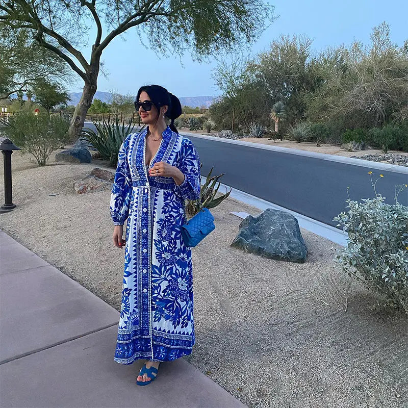 Découvrez l'essence du style bohème avec cette robe longue ornée de motifs verts émeraude. Sa coupe fluide et ample offre un confort incomparable tout en restant résolument chic.